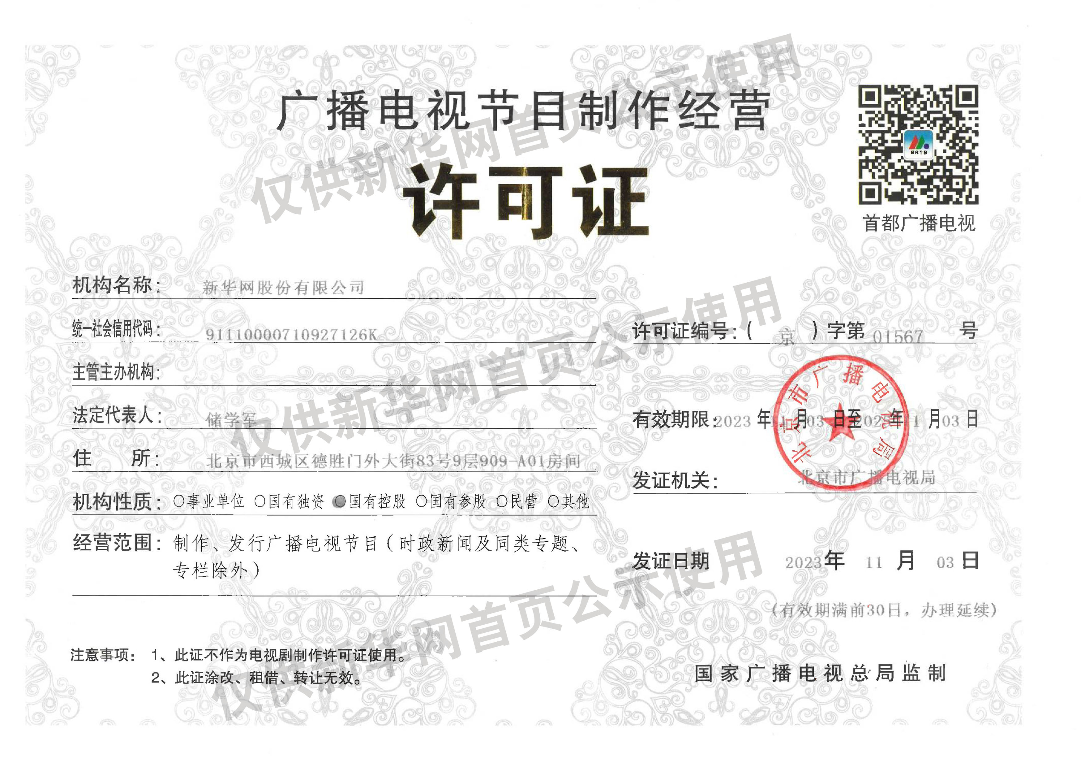 互联网新闻信息许可证10120170002 增值电信业务经营许可证B1-20243258 广播电视节目制作经营许可证(京)字第01567号 信息网络传播视听节目许可证0103020
