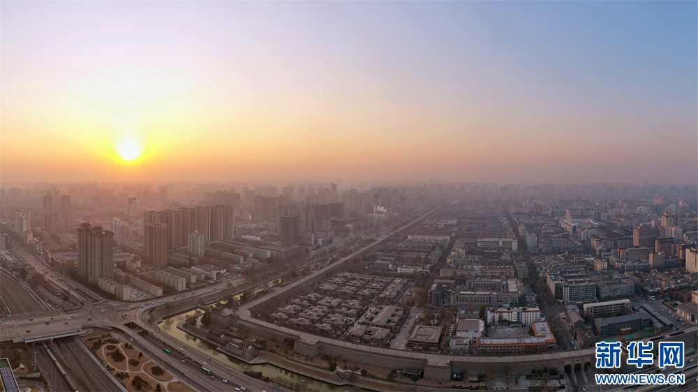 2025年1月1日清晨,空中俯瞰西安明城墙东北角(无人机照片)。新华网 王智超摄pagebreak