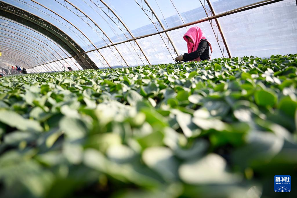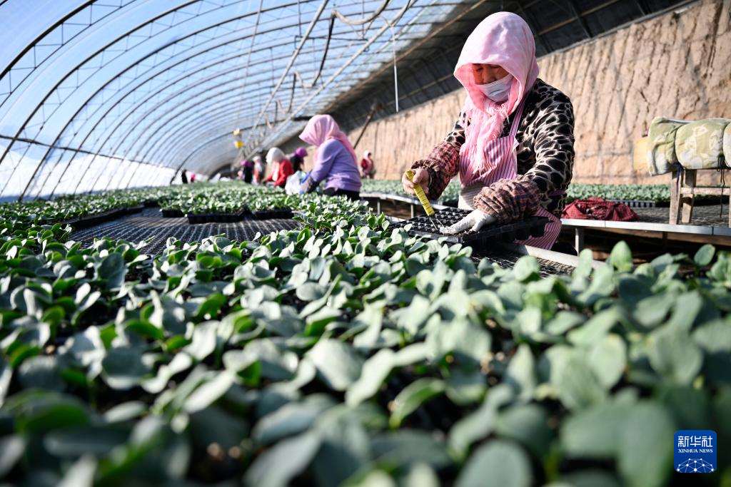 新春伊始,宁夏银川市贺兰县育苗基地迎来节后育苗生产季,工作人员加紧培育各类瓜果蔬菜幼苗,为即将到来的春耕、春播做足准备。新华社记者 王鹏 摄