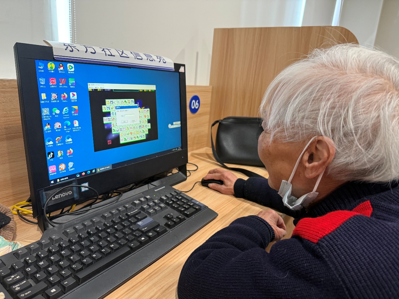 图为一名长者在电脑上玩“连连看”游戏。王若宇摄