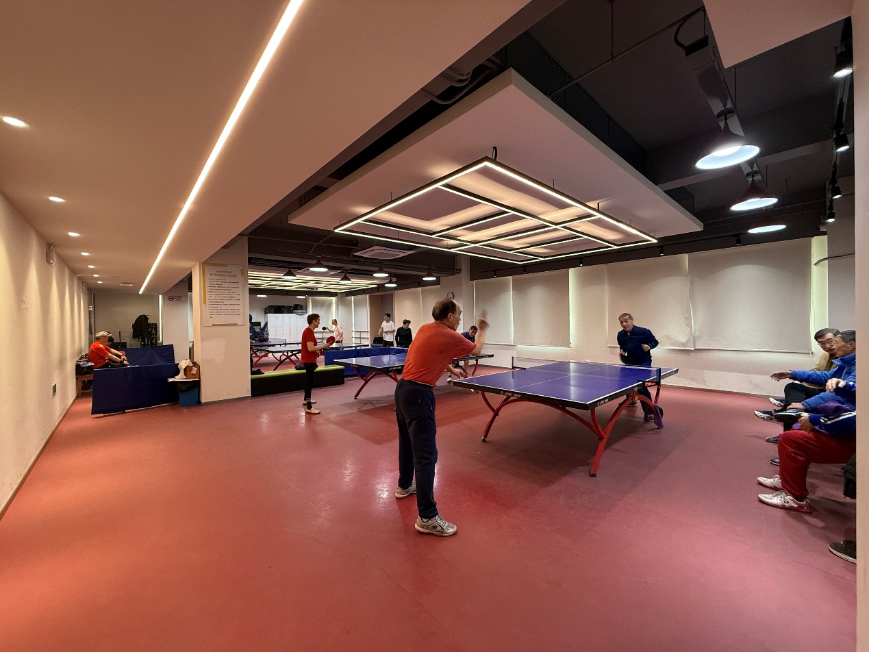 各年龄段居民在乒乓房切磋球技。王若宇摄