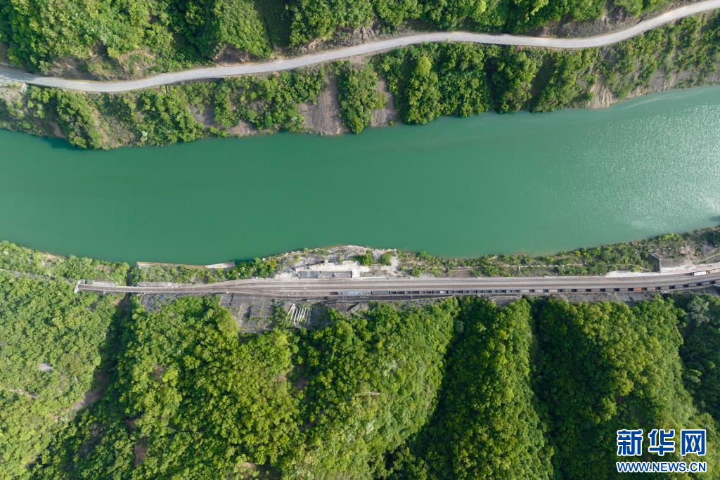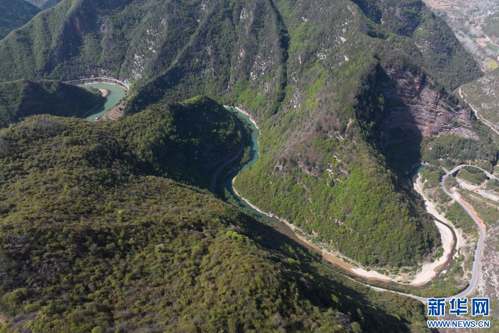 陕西省略阳县乐素河镇的秦岭、嘉陵江景色(4月16日摄,无人机照片)。