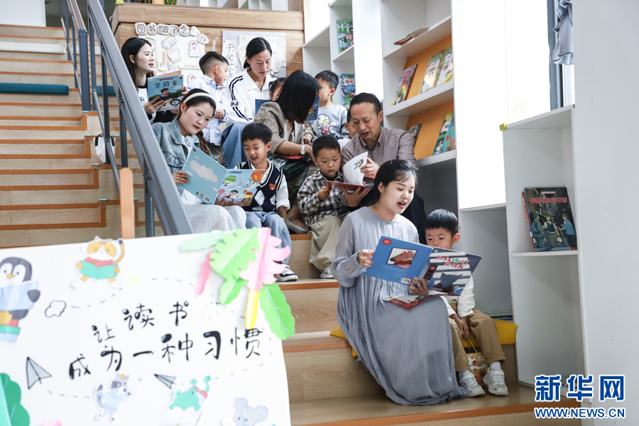 家长正在陪同小朋友阅读。新华网发 韩海建 摄