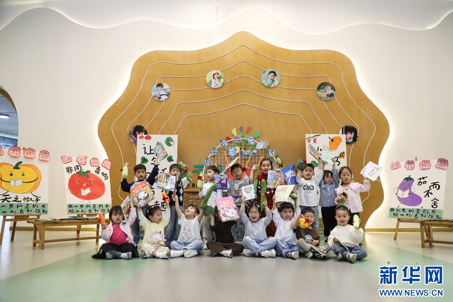 余干县第六幼儿园举行第三届读书月系列活动,引导孩子们自幼养成爱读书的好习惯。新华网发 韩海建 摄