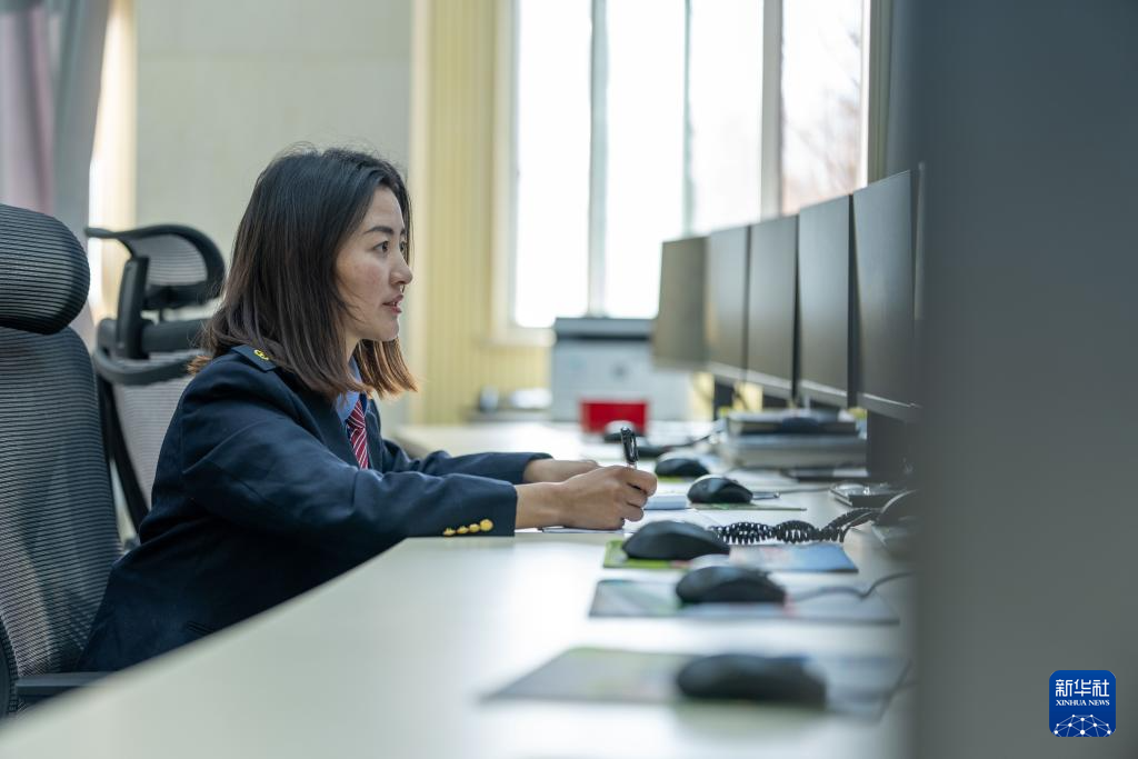 1月6日,拉萨基础设施段安全生产指挥中心调度计划监控组拥吉正在调阅监测数据。新华社记者 旦增尼玛曲珠 摄