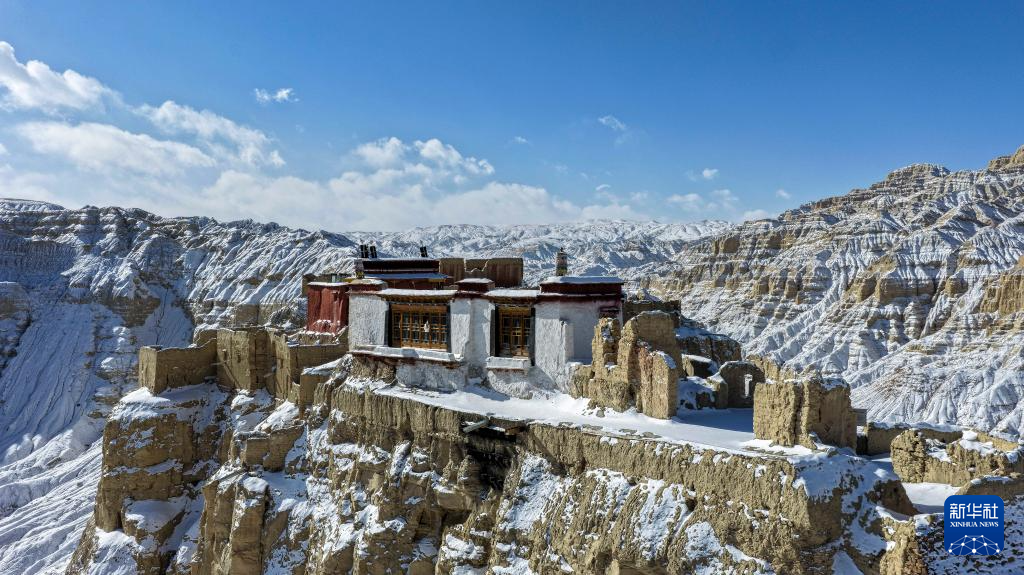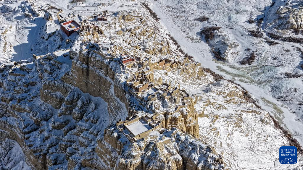这是1月24日拍摄的古格王国遗址雪景(无人机照片)。新华社发(旦真次旦摄)