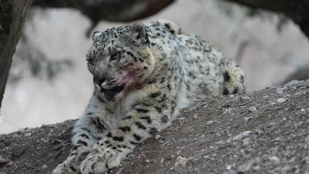 2025年3月被救护的雪豹“凌小蛰”在雪豹馆内嘶吼。
