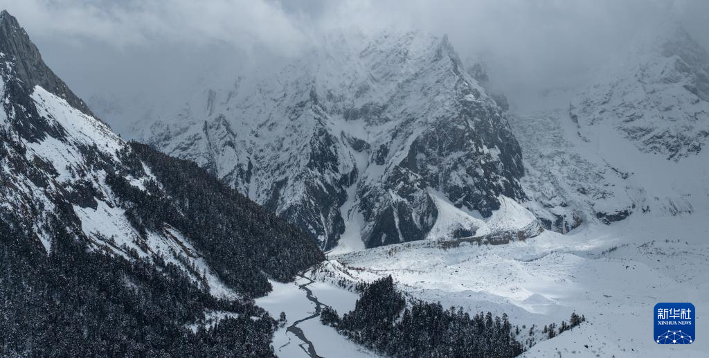 大雪覆盖的白普隆沟(3月21日摄,无人机照片)。新华社记者 洛卓嘉措 摄