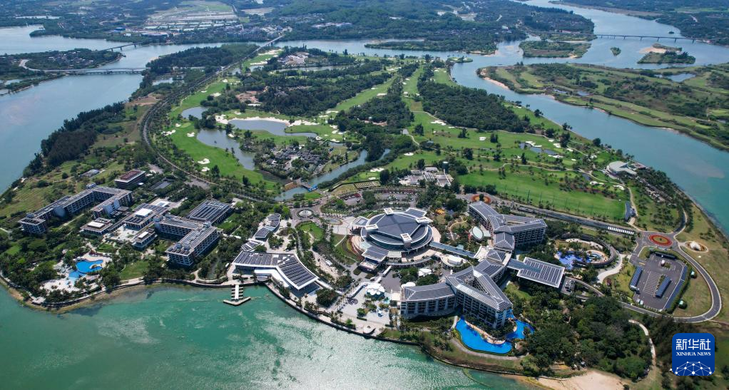 鸟瞰博鳌零碳示范区所在地海南省琼海市博鳌镇东屿岛(3月19日摄,无人机照片)。