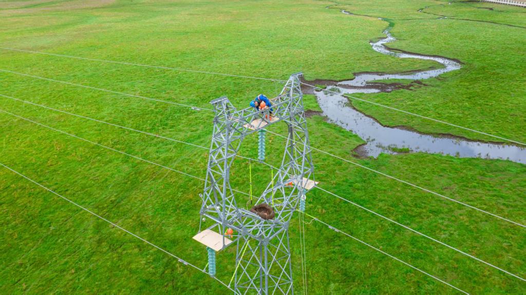 此前,同属高寒地带的若尔盖湿地,也曾面临同样困境。2021年起,国网阿坝供电公司联合鸟类专家、林草部门深入调研湿地沿线线路,分析鸟类迁徙、分布规律及保护级鸟类栖息区域,探索出“生命鸟巢”的生态治理方案:在铁塔安全区域安装人工鸟巢,引导鸟儿安心住下;在带电区域加装防护设备,让鸟儿远离危险。