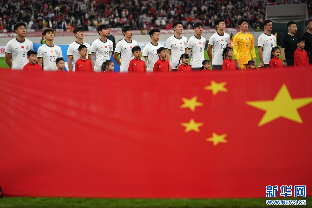 3月31日,中国U23队在出场仪式上。新华社记者 李一博 摄