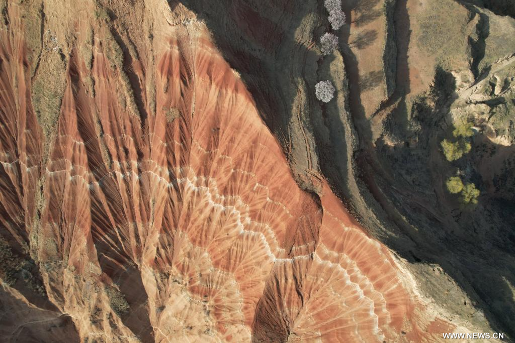 دونغشيانغ 5 أبريل 2026 (شينخوا) في الصورة الملتقطة يوم 3 أبريل 2026، منظر خلاب لتضاريس دانشيا في بلدة دونغيوان بمحافظة دونغشيانغ ذاتية الحكم التابعة لولاية لينشيا ذاتية الحكم لقومية هوي في مقاطعة قانسو شمال غربي الصين.
