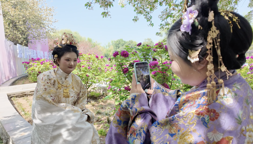 “都说‘洛阳牡丹甲天下’,实地一看,果然名不虚传。”在洛阳隋唐城遗址植物园内,记者遇到了一袭“大唐公主”妆造的江苏游客杨欣,“穿汉服、赏牡丹、逛古城,这才是春天的最佳打开方式。”