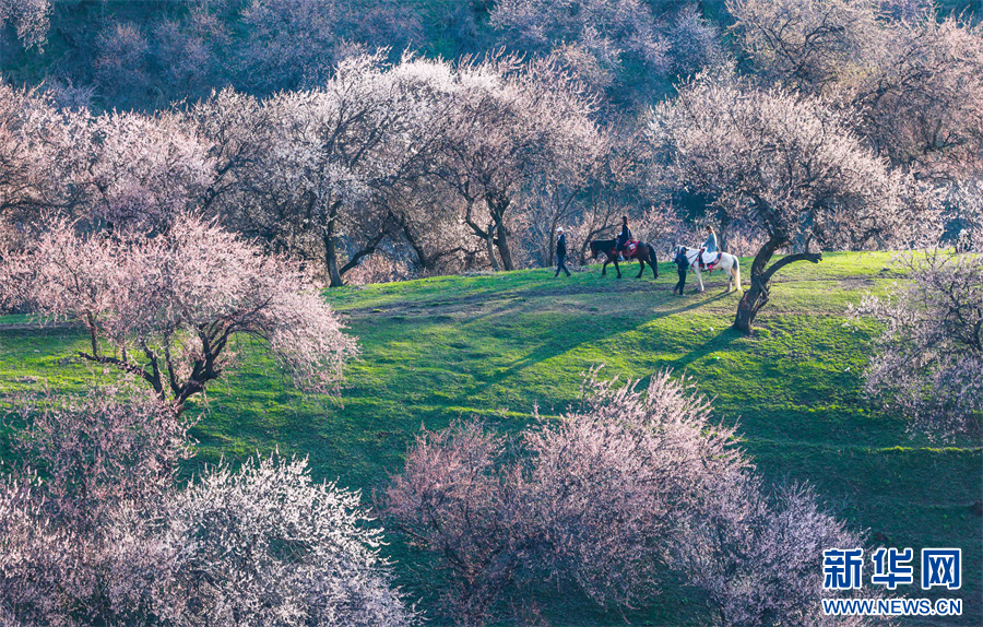 春风送暖,新疆新源县那拉提杏花谷万亩野杏林,迎来踏青赏花热潮。原始野杏林绵延整个山谷,花香沁人心脾。各地游客徜徉花间,或漫步轻嗅芬芳,或策马穿行花海,定格绿草与繁花同框的绝美瞬间。微风拂过,花瓣纷飞,游人沉醉于自然野趣,尽享春日限定浪漫。