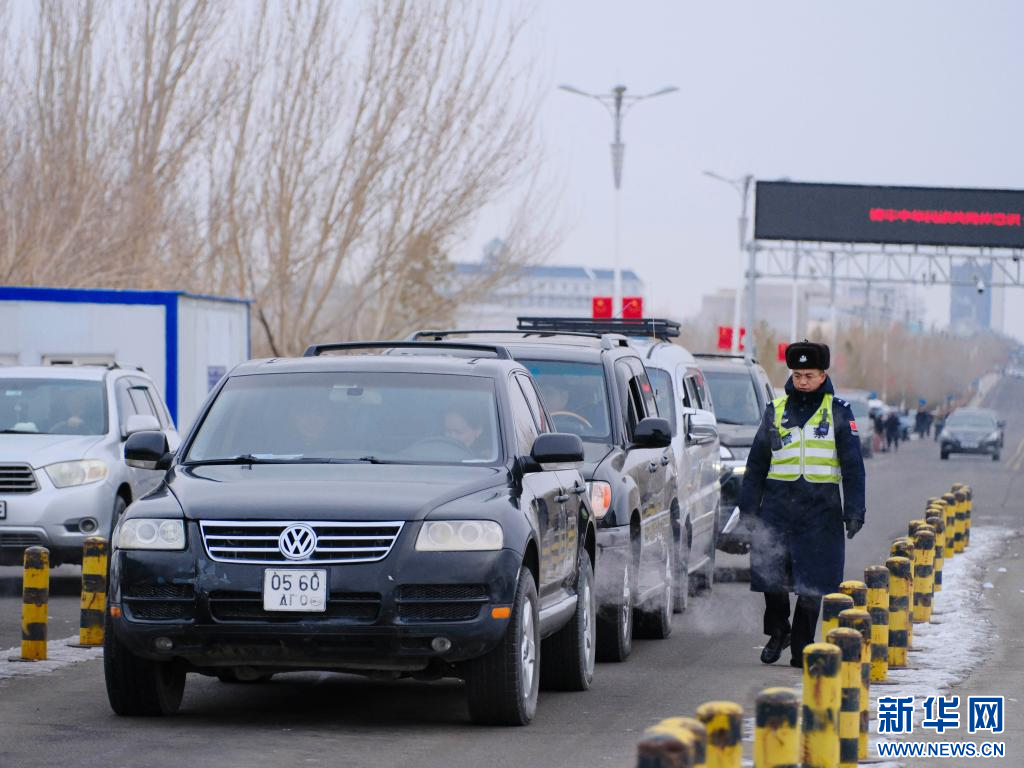 2025年12月22日,汽车在内蒙古二连浩特公路口岸等待出境。新华社记者 马金瑞 摄
