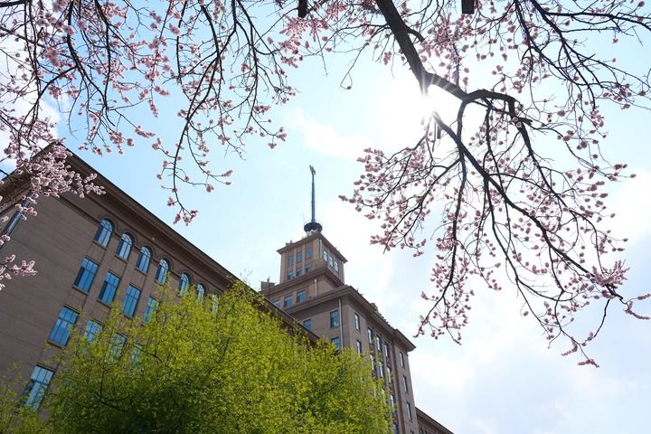 丁香掩映下的哈工大主楼(2025年5月17日摄)。辛然 摄
