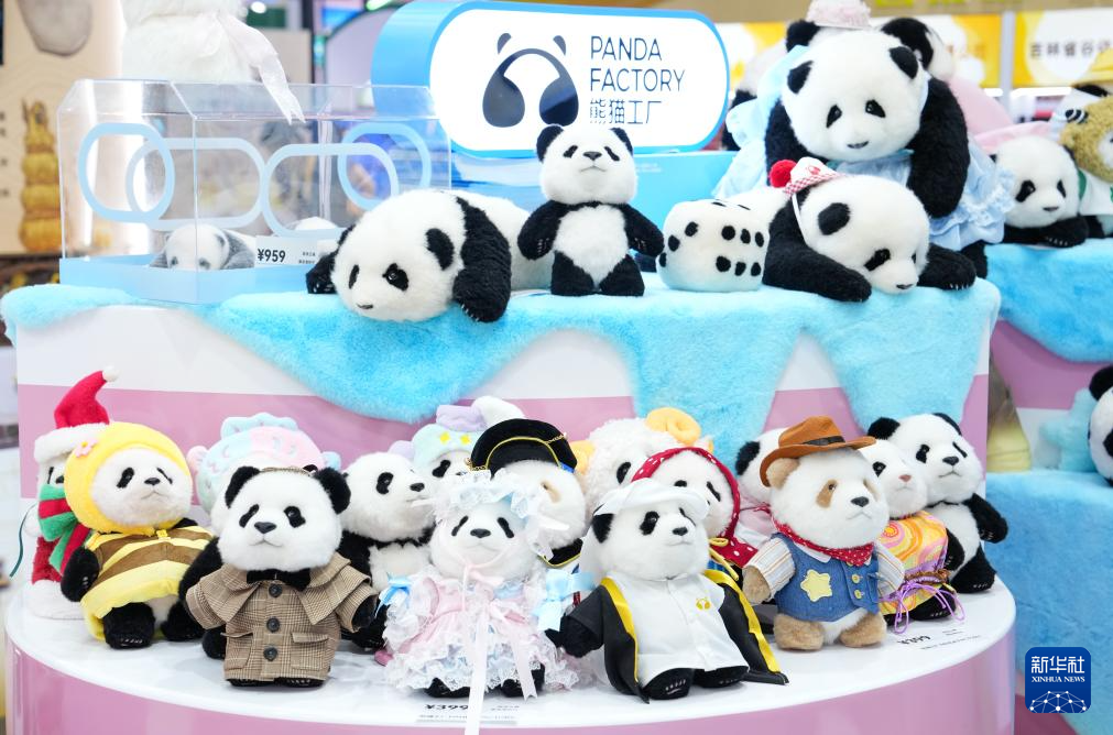 4月15日在第六届消博会上拍摄的秦岭大熊猫文创品牌——“秦憨憨”。新华社记者 蒲晓旭 摄
