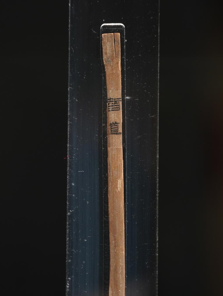 这是在江西南昌汉代海昏侯国遗址博物馆拍摄的齐《论语·智道》简,其上文字为“孔子智道之昜也昜昜云者三日子曰此道之美也莫之御也”(4月13日摄)。