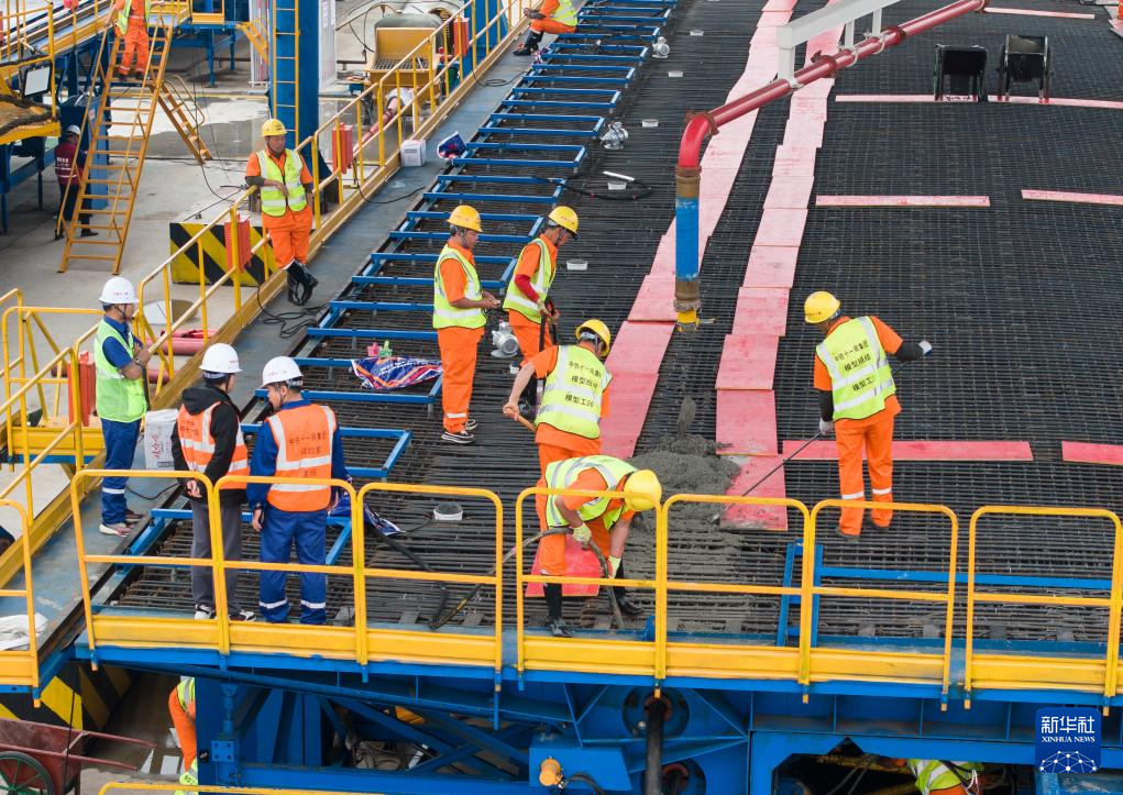 4月16日,工作人员在制作首榀箱梁。新华社发(丛刚摄)