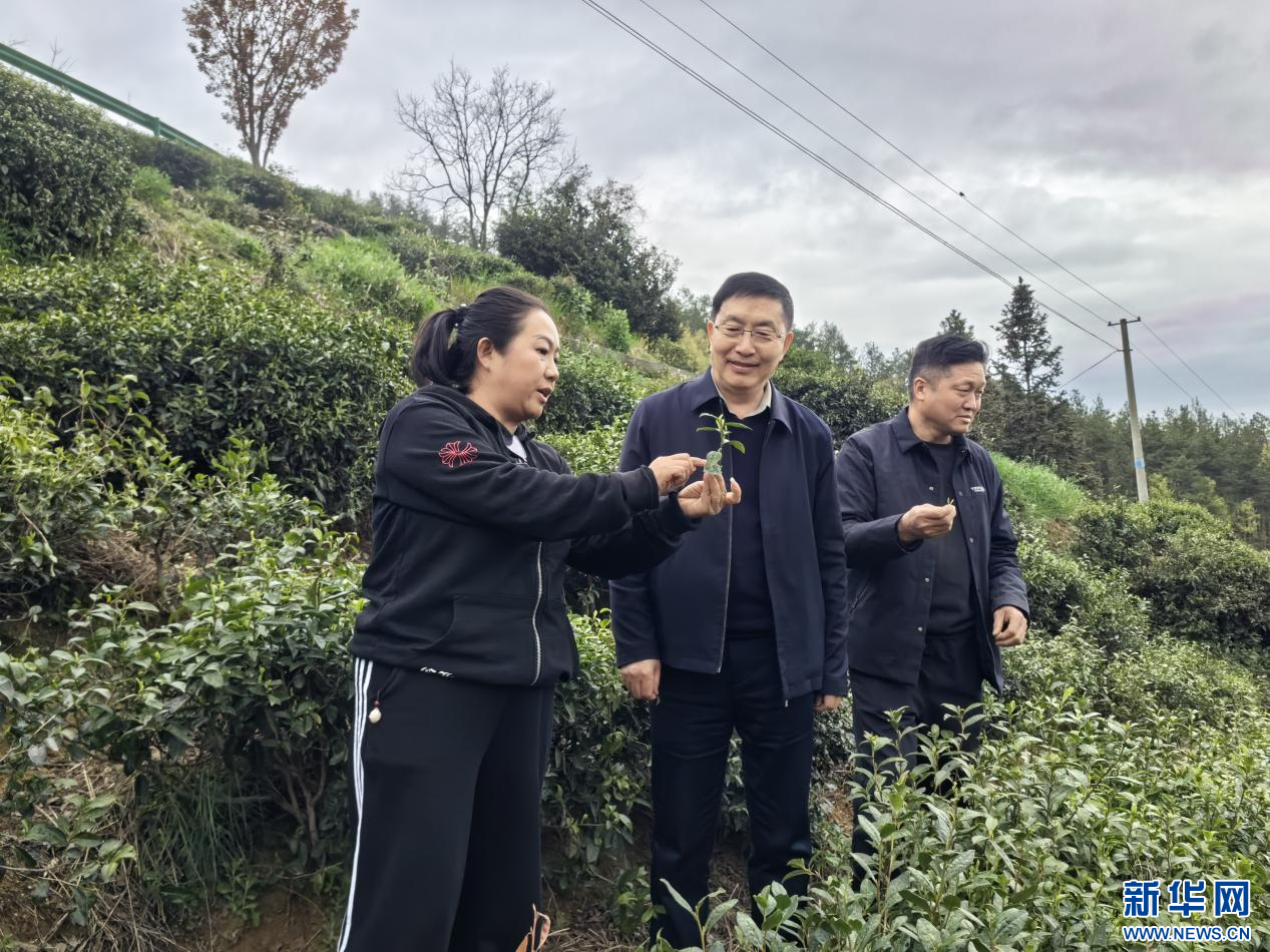 2026年3月30日,中国农业科学院茶叶研究所专家鲁成银在陕西省安康市汉阴县茶园察看春茶长势,并指导采摘技术要点。新华网发(刘东摄)
