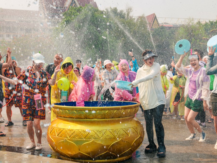 【新華社景洪4月17日】中国雲南省西双版納(シーサンパンナ)ダイ族自治州で15日、年に一度の水かけ祭りが開かれた。各民族の人々や各地からの観光客が景洪市の水かけ広場に集まり、水をかけ合いながら新年を共に祝った。