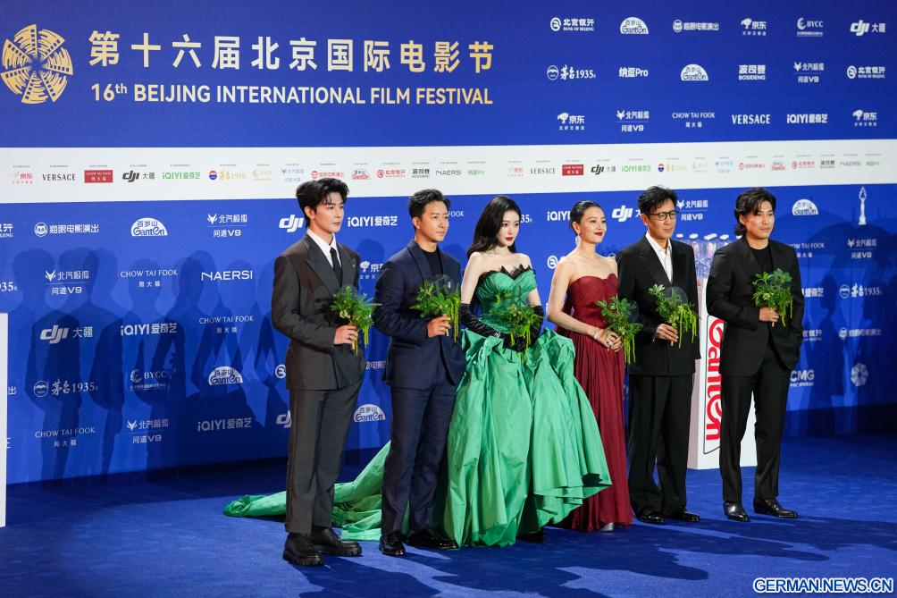 BEIJING, 16. April 2026 (Xinhuanet) -- Das am 16. April aufgenommene Foto zeigt eine Szene bei der Eröffnungszeremonie des 16. Internationalen Filmfestivals von Beijing (BJIFF) in der chinesischen Hauptstadt Beijing. Das 16. BJIFF wurde am Donnerstag hier im Yanqi Lake International Convention & Exhibition Center eröffnet. (Quelle: Xinhua/Xie Han)