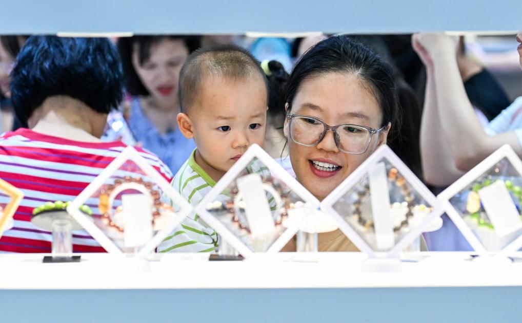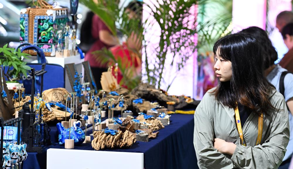 4月18日,参观者在第六届消博会现场参观购物。新华社记者 杨冠宇 摄