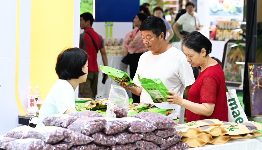 4月18日,参观者在第六届消博会科技消费展区参观购物。新华社记者 杨冠宇 摄