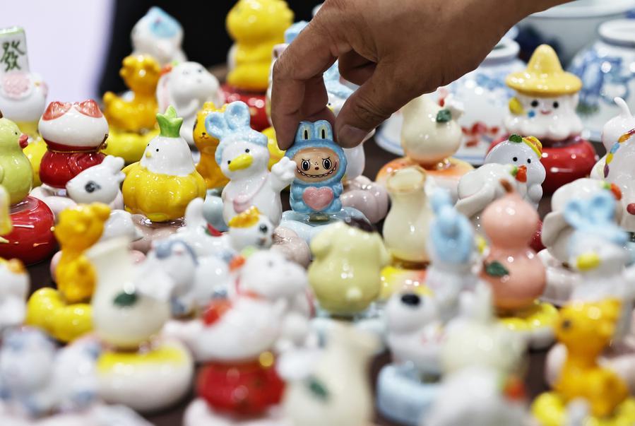 15日、第6回中国国際消費品博覧会の会場で展示された陶磁器の置き物。(海口=新華社記者/高静)