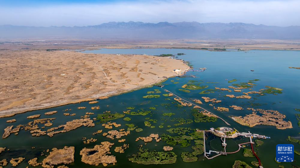 这是4月18日拍摄的沙湖生态景观(无人机照片)。新华社记者 王鹏 摄