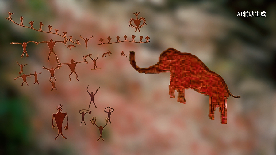 从多处沧源崖画中提取出的大象图案元素。(视频截图)