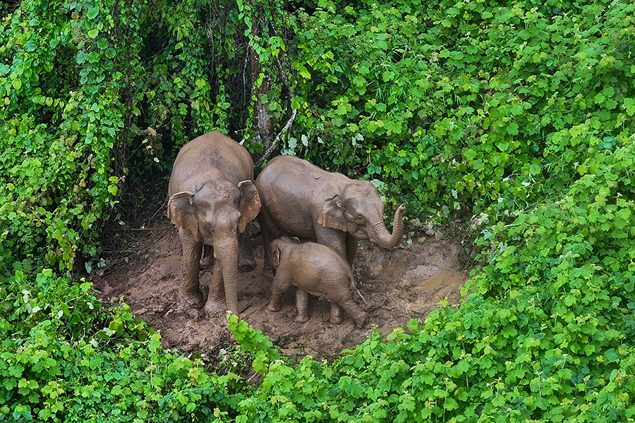 航拍在沧源县活动的亚洲象(资料图)。新华网发(云南南滚河国家级自然保护区管护局 供图)
