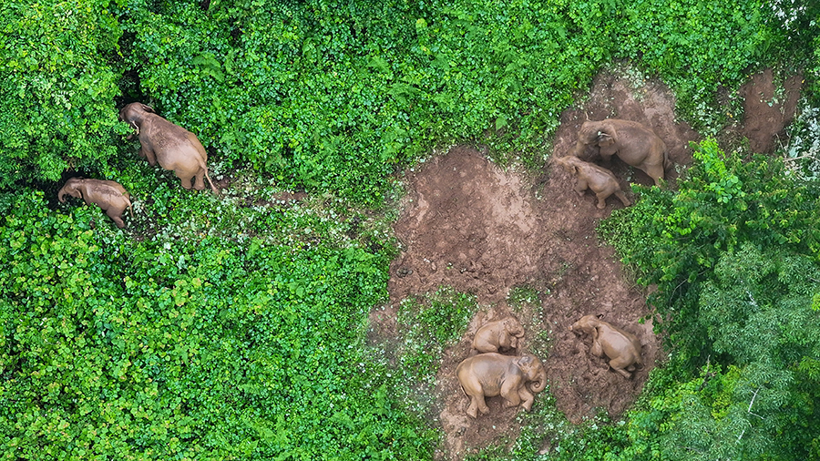 航拍在沧源县活动的亚洲象群(资料图)。新华网发(云南南滚河国家级自然保护区管护局 供图)