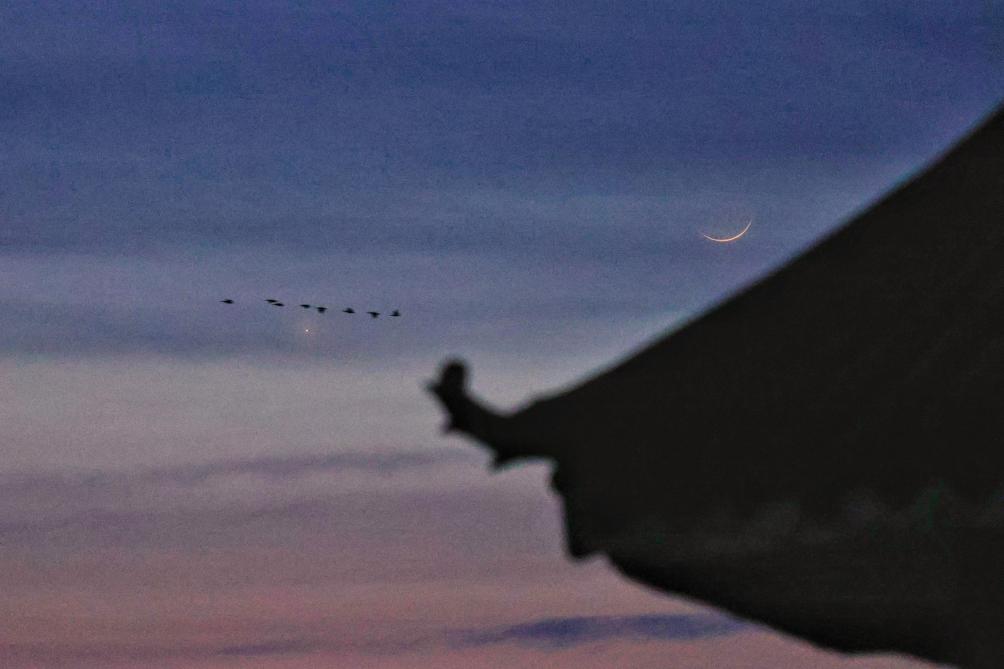 “由于此时还没日落,还是要等天色暗下一些,蛾眉月变得更亮时观测效果更好,因此最佳的观测时间窗口其实并不充裕,只有一个小时左右,还需注意不要被地面的遮挡干扰。”杨婧提醒说。