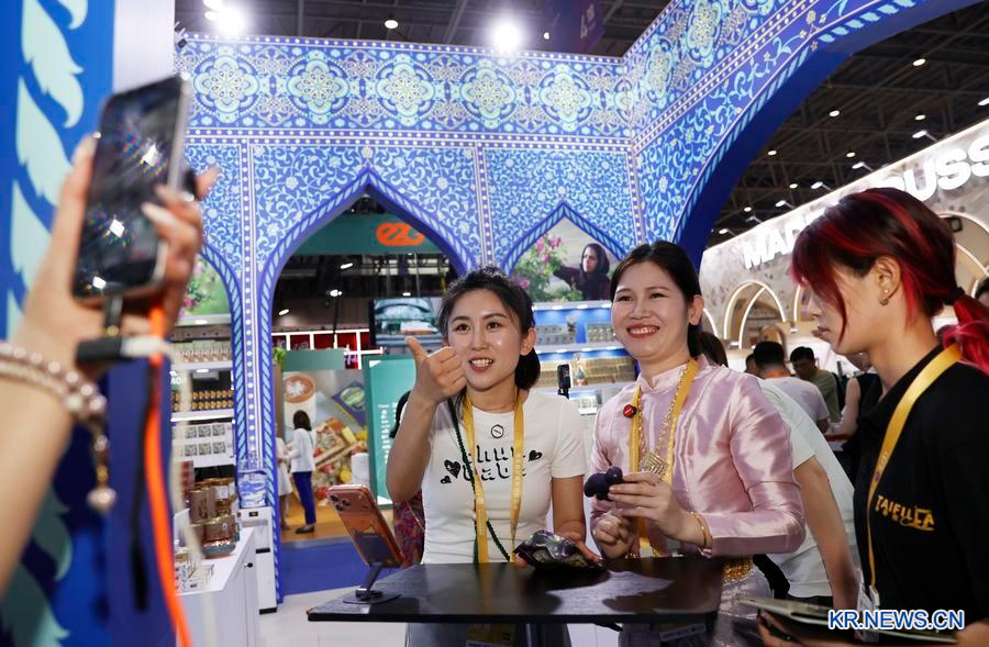 글로벌 특색 소비 전시구역에선 라이브 커머스 진행자들이 온라인을 통해 프리미엄 제품을 홍보하고 아일랜드산 비스킷 버터, 프랑스 와인, 캐나다 인삼차 등 시식 코너들도 마련돼 행사에 풍성함을 더했다.