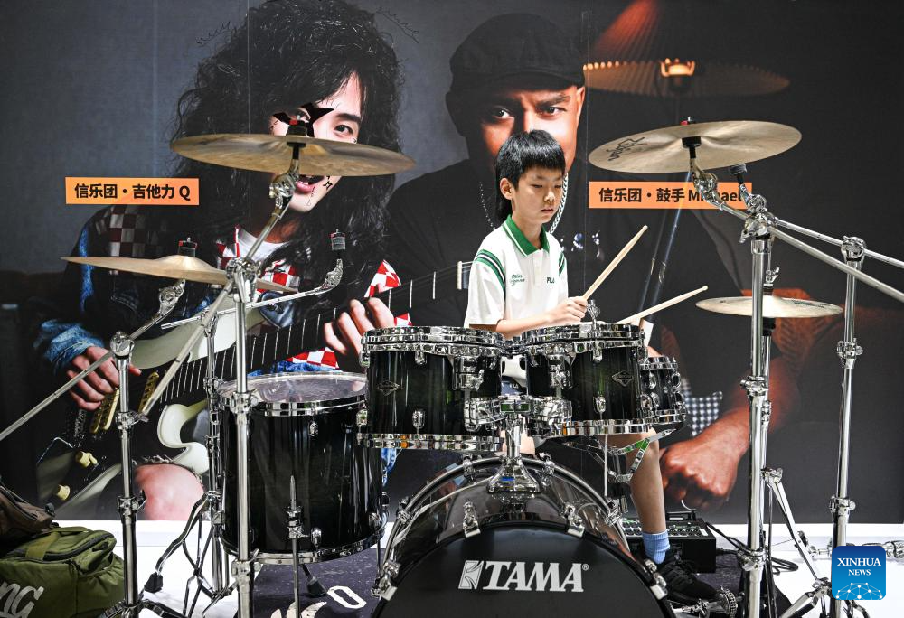 A visitor plays the drum kit at the sixth China International Consumer Products Expo (CICPE) in Haikou, south China's Hainan Province, April 18, 2026. The sixth China International Consumer Products Expo (CICPE), a key gateway into China's vast consumer market and a platform for China to offer more quality consumer products to the rest of the world, concluded in the tropical island province of Hainan Saturday. (Xinhua/Pu Xiaoxu)
