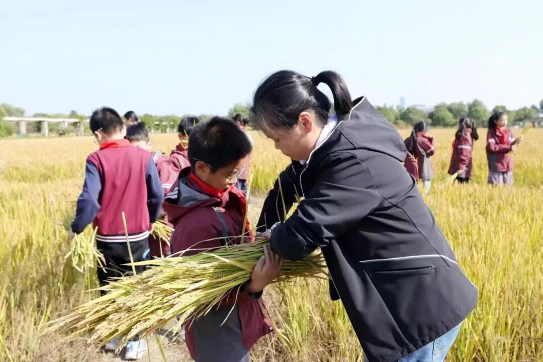 近日,苏州市金阊外国语实验学校袁隆平中队的队员们来到苏州农业职业技术学院(相城校区)科技园的稻田,开展 “手握镰刀学农耕” 劳动实践活动。