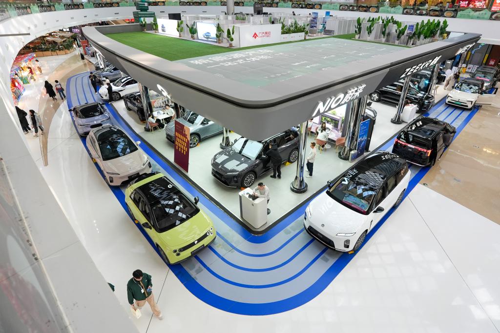 在北京市朝阳区一个商场内,市民在了解新能源汽车(2026年2月11日摄)。新华社记者 鞠焕宗 摄