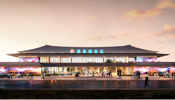 G30连霍高速陕西眉县服务区效果图目前,西北首个零碳服务区G30连霍高速陕西眉县服务区提质升级项目顺利推进,计划今年10月底投用。