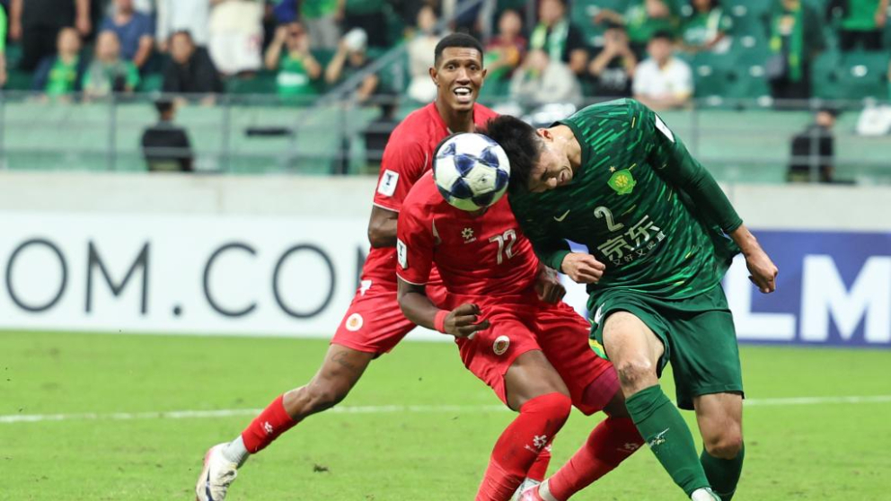 9月18日,北京国安队球员张源(上右)和河内公安队球员维托(上左)在比赛中争顶。当日,在北京举行的2025-2026赛季亚冠二级联赛小组赛E组比赛中,中超北京国安队主场2比2战平越南甲级联赛河内公安队。