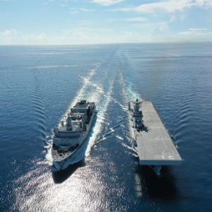 ↑海南舰进行补给训练