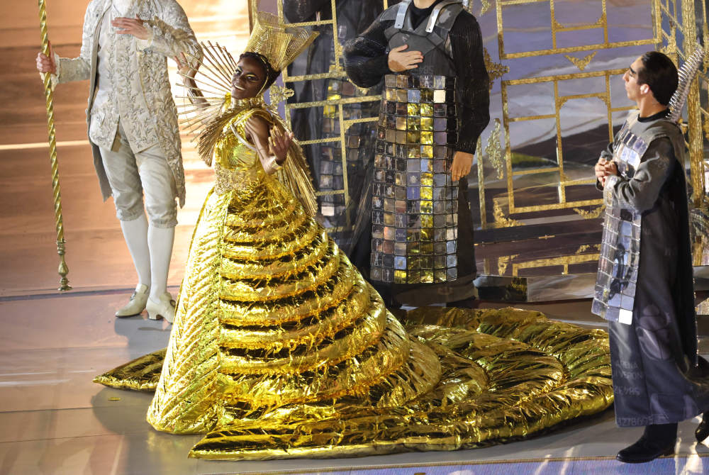 ↑演员在闭幕式上表演。