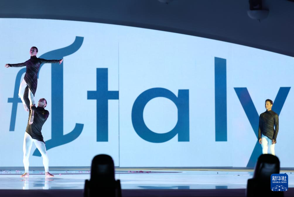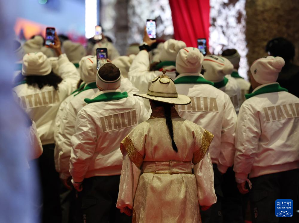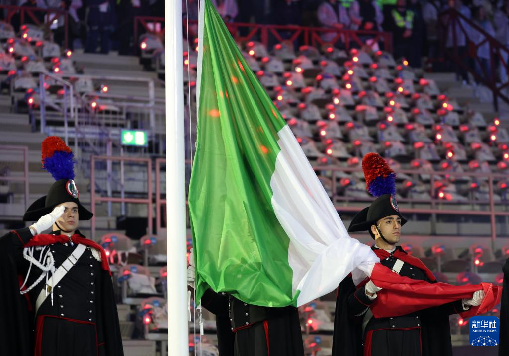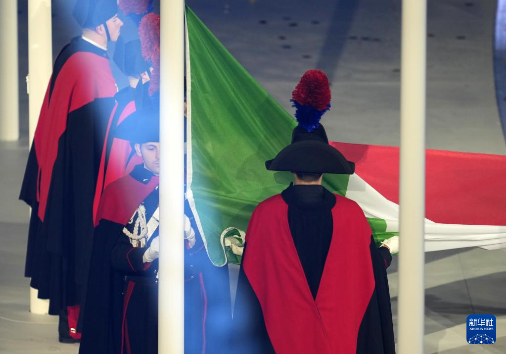 这是2月22日在闭幕式现场拍摄的意大利国旗。