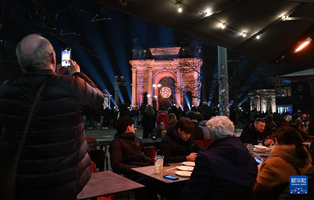 这是2月22日在意大利米兰和平拱门拍摄的熄灭后的主火炬。