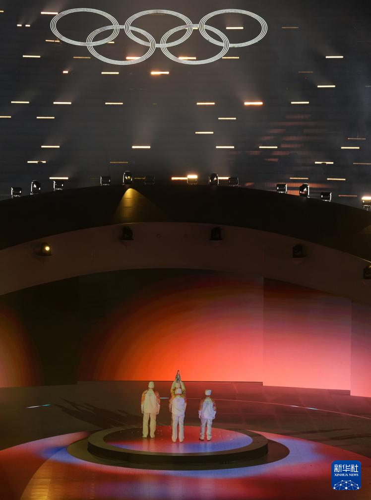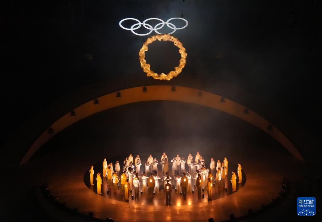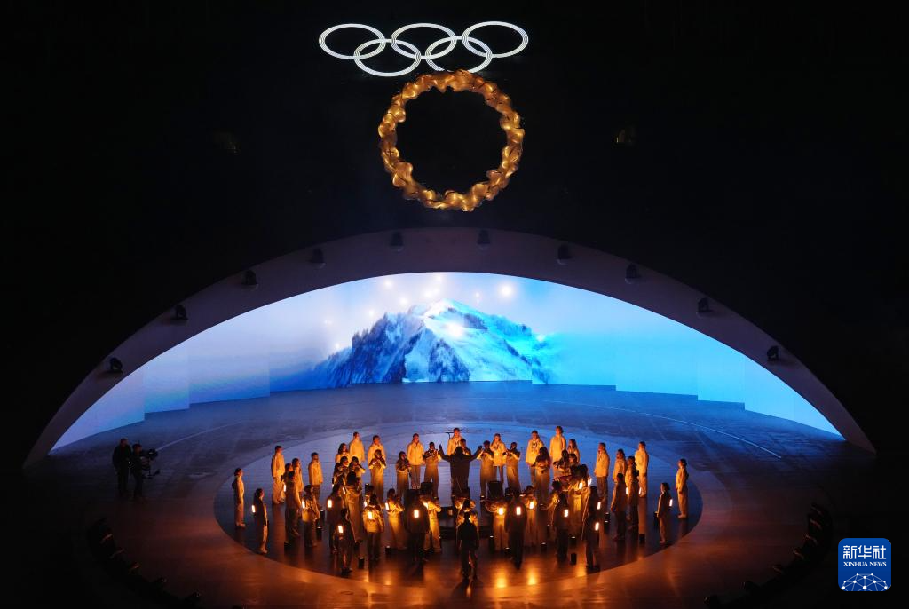 这是2月22日在闭幕式上拍摄的奥运圣火火种。