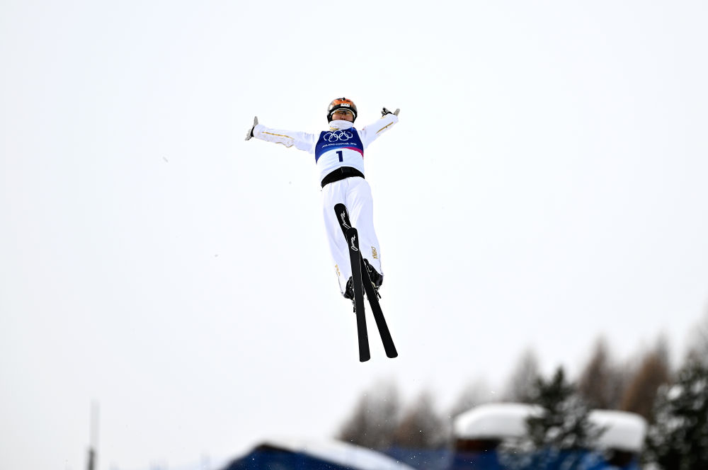 2月20日,王心迪在自由式滑雪男子空中技巧决赛中等待成绩。新华社记者 胡超 摄