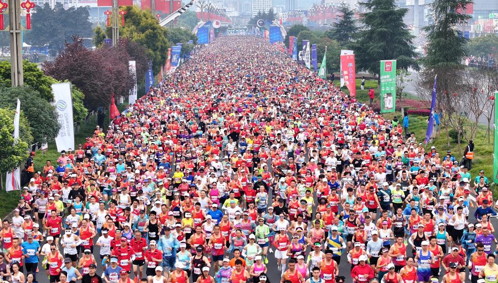 3月15日,2026全国半程马拉松锦标赛暨第九届眉山仁寿半程马拉松·跑遍四川(眉山站)在四川省眉山市仁寿县举行,共吸引国内外2万名选手参赛。新华社发(潘建勇 摄)