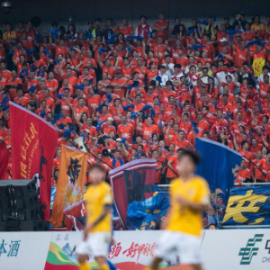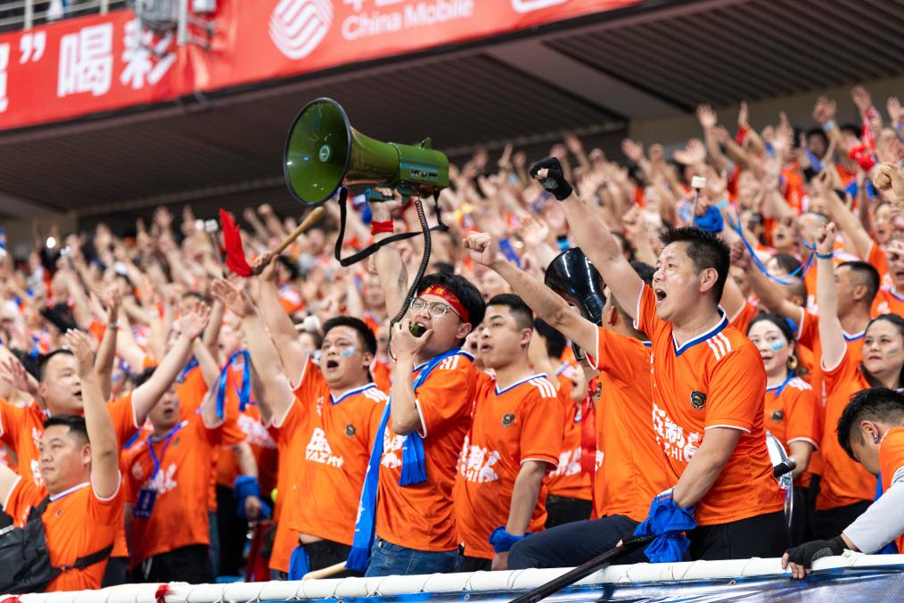 九江球迷在“楚超”赛场为黄石队加油。(组委会供图)