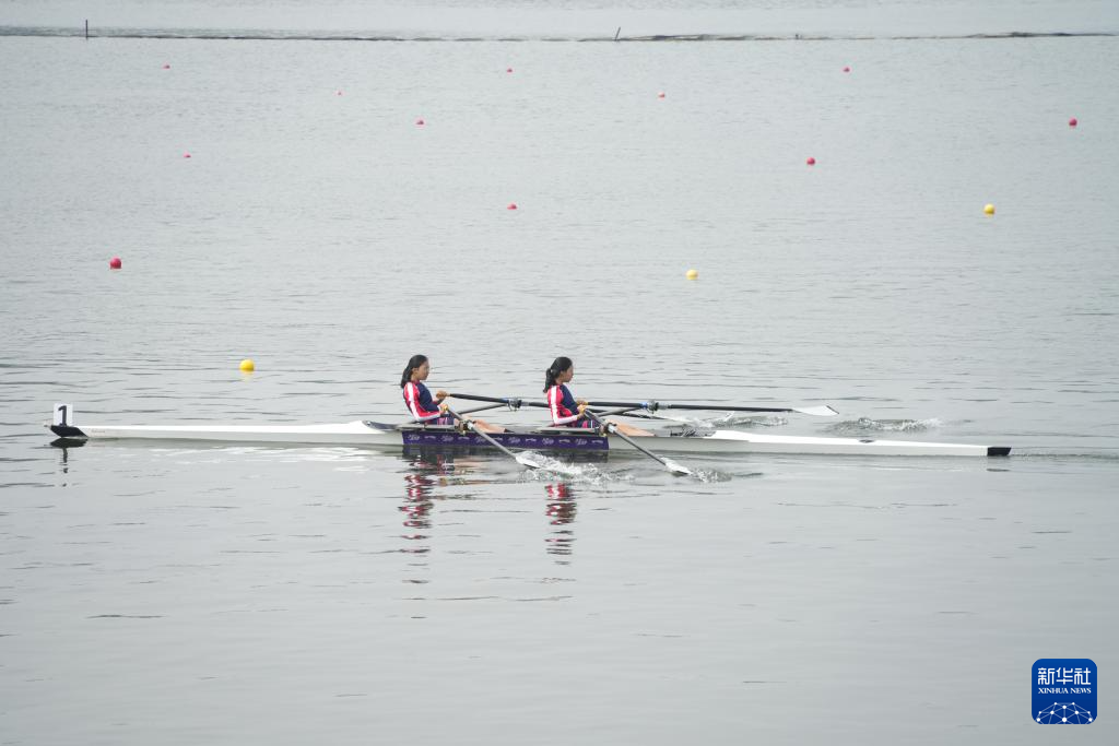 4月18日,青少年组女子双人双桨选手在比赛中角逐。
