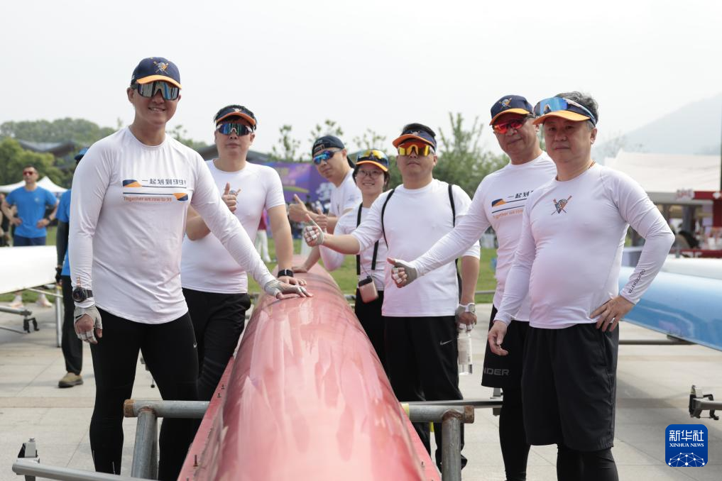 4月18日,杭州巨浪赛艇队在赛前合影。